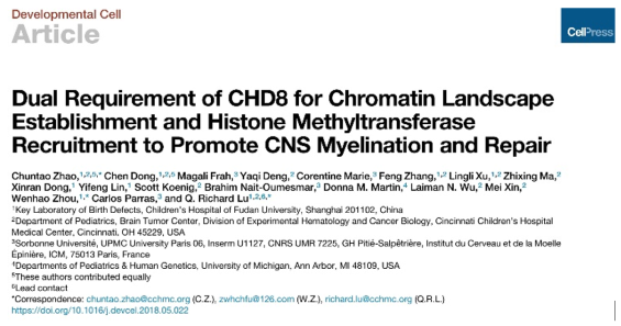 ▲Dev Cell丨复旦团队揭示孤独症相关基因CHD8在少突胶质细胞发育、髓鞘形成和损伤后修复中的作用机理