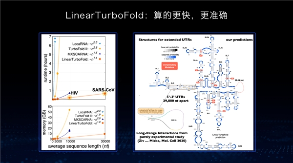 生物计算是百度持续发力的另一大前沿技术领域。自2018年开展生物计算相关研究以来,百度以RNA中具有重要作用的大分子为研究对象,以生物计算相关算法为研究核心,陆续开发出了LinearFold、LinearPartition、LinearSampling等一系列世界最快的RNA二级结构预测和采样算法。针对新冠疫情,在2020年初陆续开发出了mRNA序列创意算法LinearDesign和RNA同源序列分析算法LinearTurboFold。这一系列算法不仅创新性强,技术指标领先,还具有很强的落地价值。