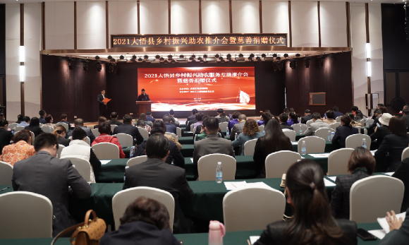 会议由大悟县农业农村局局长王道敏同志主持,县政协喻容,县农业农村局、商务局、乡村振兴局、教育局、关工委、宣化镇等有关领导出席会议。永倍达公司执行董事长许强、总裁王纪伟,天津市源初公益基金会理事长朱颖,以及林宝莱公司董事长姚德中等受邀企业、机构的领导嘉宾百余人共同参加。