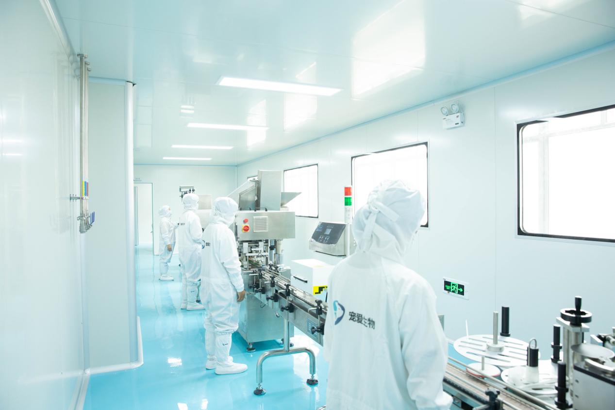 该工厂可提供OEM、ODM宠物营养补充剂、宠物食品及宠物用品,涵括片剂、粉剂、膏剂、液体饮料、软颗粒、零食、饼干、咬胶、鲜粮、宠物沐浴露、抑菌剂、除臭剂、护肤乳等产品。膏剂日产10万支,片剂日产1152万片,粉剂日产超11吨,液体日产50万瓶,工厂年产值超7亿元,是目前国内最大的营养品生产基地。