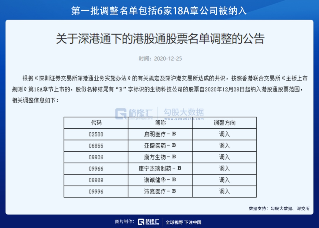 沪深交易所公告,根据三大交易所于11月27日达成的共识,按照港股《主板上市规则》第18A节上市,股份名称带“-B”标识的生物科技公司自28日起纳入港股通范围。