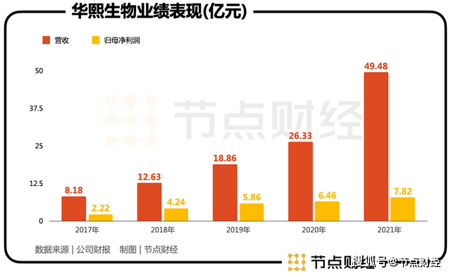体现在华熙生物身上,2017年-2021年,公司营收从8.18亿元增长至49.48亿元,复合年增速56.8%;归母净利润从2.22亿元增长至7.82亿元,复合年增速37%。作为一个做实业且业务多元的公司,这样的增长速度分量不轻。