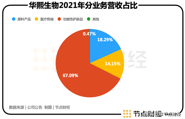 目前,在应用层面,华熙生物主要有医疗终端、功能性护肤品、功能性食品,并与生物活性物原料共同构成公司多元业务板块。