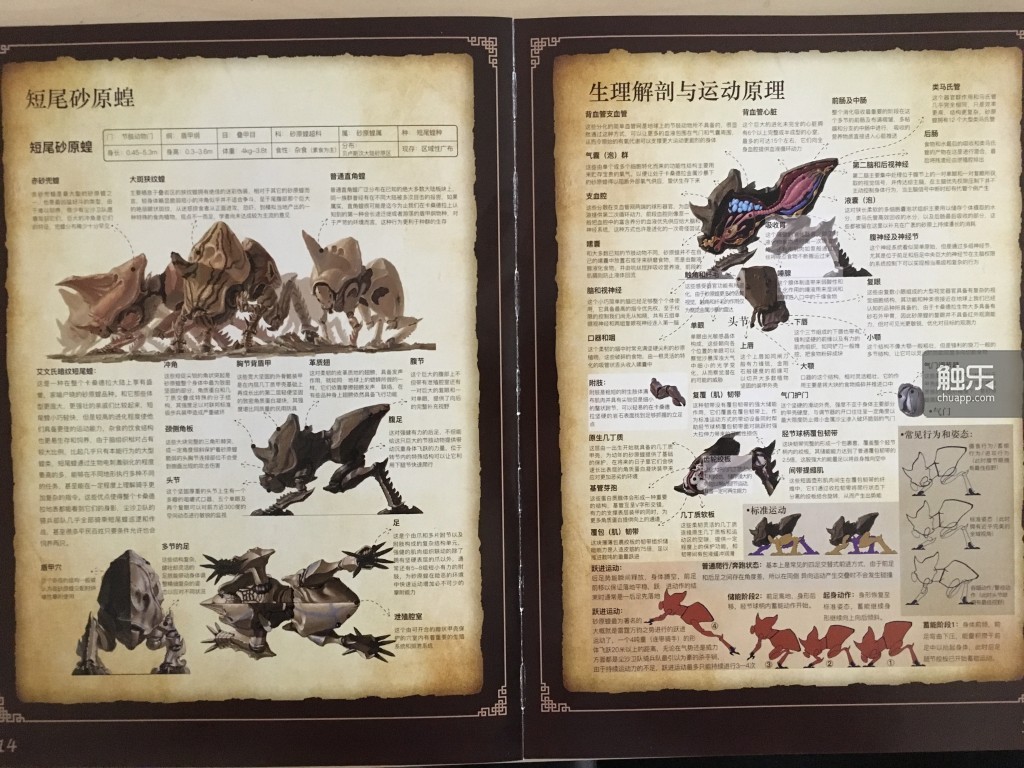 尽管此前已经在网上看过部分图片,实体的册子仍然令人感到惊讶:与一般以图片为主设定集相比,满目皆是文字;即便是图片,也只有少量彩图,其他大部分是黑白速写和生物解剖图。与其说这是设定集,不如说更像是关于某个虚构世界的生物学教材。这在国内已有的各种成形设定中,几乎是绝无仅有。