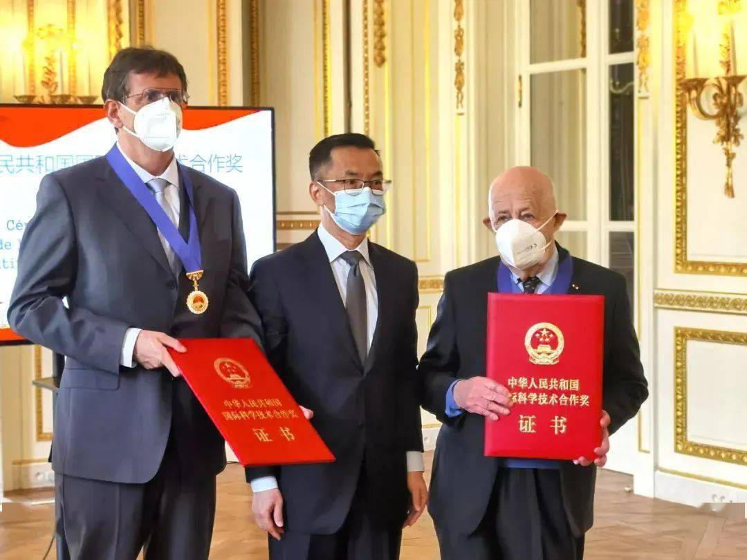 中华人民共和国国际科学技术合作奖是中国国务院于1994年设立的国家级年度奖项,1995年起每年授奖一次,旨在表彰奖励对中国科技事业和全人类科技进步作出突出贡献的外国专家和组织,至今共有136位外国专家、3个国际组织和1个外国组织获此殊荣,其中包括9名法国专家。2020年度共有8位外籍专家和1个国际组织获奖。由于疫情原因,该年度奖项由中国政府委派中国驻外使馆在有关驻在国颁授。