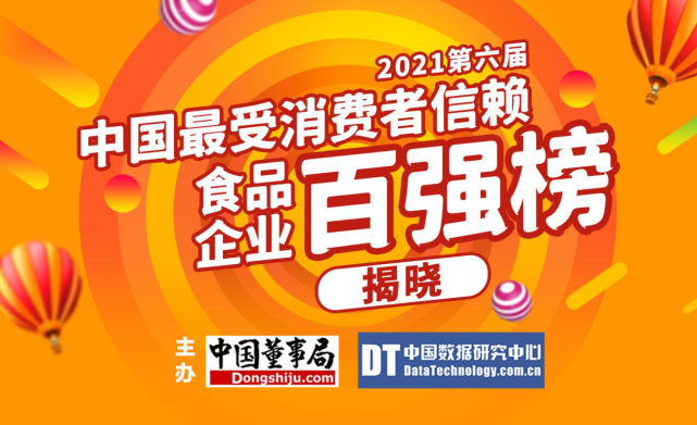 2021第六届中国最受消费者信赖食品企业100强评选活动是由中国董事局网、中国数据研究中心共同组织开展。前期通过资料分析、消费者网络问卷调研、企业问卷调研等方法,进行系统的调研和分析,获得300余家候选中国食品企业。最后经组委会专家评委计分加权、汇总得出百强榜单,确保评价体系科学理性、评选程序客观公正。